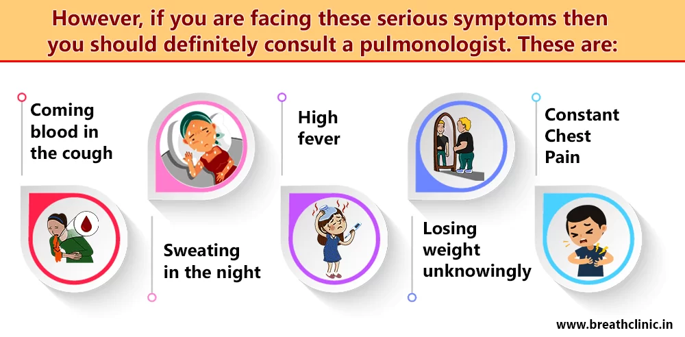 However, if you are facing these serious symptoms then you should definitely consult Chronic cough doctor near me, These are:
